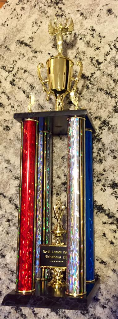 UPDATE 10/23/2015 @ 4:00pm — There’s been a slight change to the schedule on Sunday and the poster above and the information below has been updated to reflect that change. Things will kick off at 8:30am Sunday morning when the doors open for the first match of the day on Sunday. Around 9:30am we’ll get started with a free-to-enter, PlayStation 4-based, single-elimination tournament in EA Sports FIFA 16. And yes, prizes will be awarded to the winners of both the tournament and the derby, like this dope trophy. Roughly 10:30am or so, Nation Bar & Grill — the sister restaurant to our hosts Rhinehaus — will be offering up free breakfast. Listermann and West 6th are also whipping up special beers for the occasion. Then, there’s the big game itself, which kicks off at 11am.